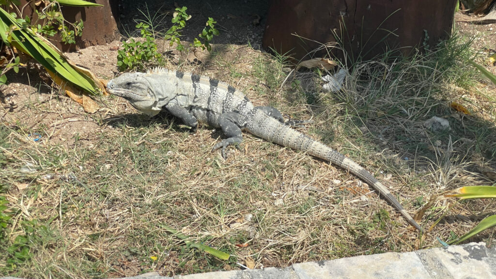 Frisch gestärkt bleibt etwas Zeit den Strand zu genießen oder die Insel zu erkunden. Wir drehen eine Runde mit dem Clubcar über die Insel… zu sehen gibt es neben Felsen, Natur und natürlich viel Wasser auch Leguane.
